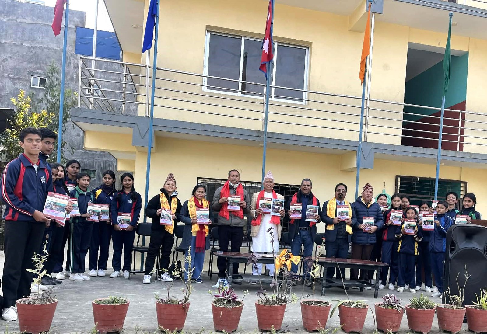 विद्यालयका प्रिन्सिपल रविन्द्र डंगोलले विद्यालयले साहित्य र साहित्यकारलाई सदैव माया र सम्मान गर्दै आएको र आउने दिनहरूमा पनि त्यो कुरा निरन्तर रहने बताउनुहुँदै विद्यार्थीहरूमा रहेको सिर्जनात्मक प्रतिभाको प्रस्फुटन र संरक्षणमा साहित्यिक पत्रपत्रिकाको महत्वपूर्ण भूमिका रहने भएकोले विद्यालयले सधैं साहित्यिक पत्रत्रिकाहरूसँग सहकार्य गर्दै अघि बढ्ने कुरा प्रष्ट पार्नुभयो ।
