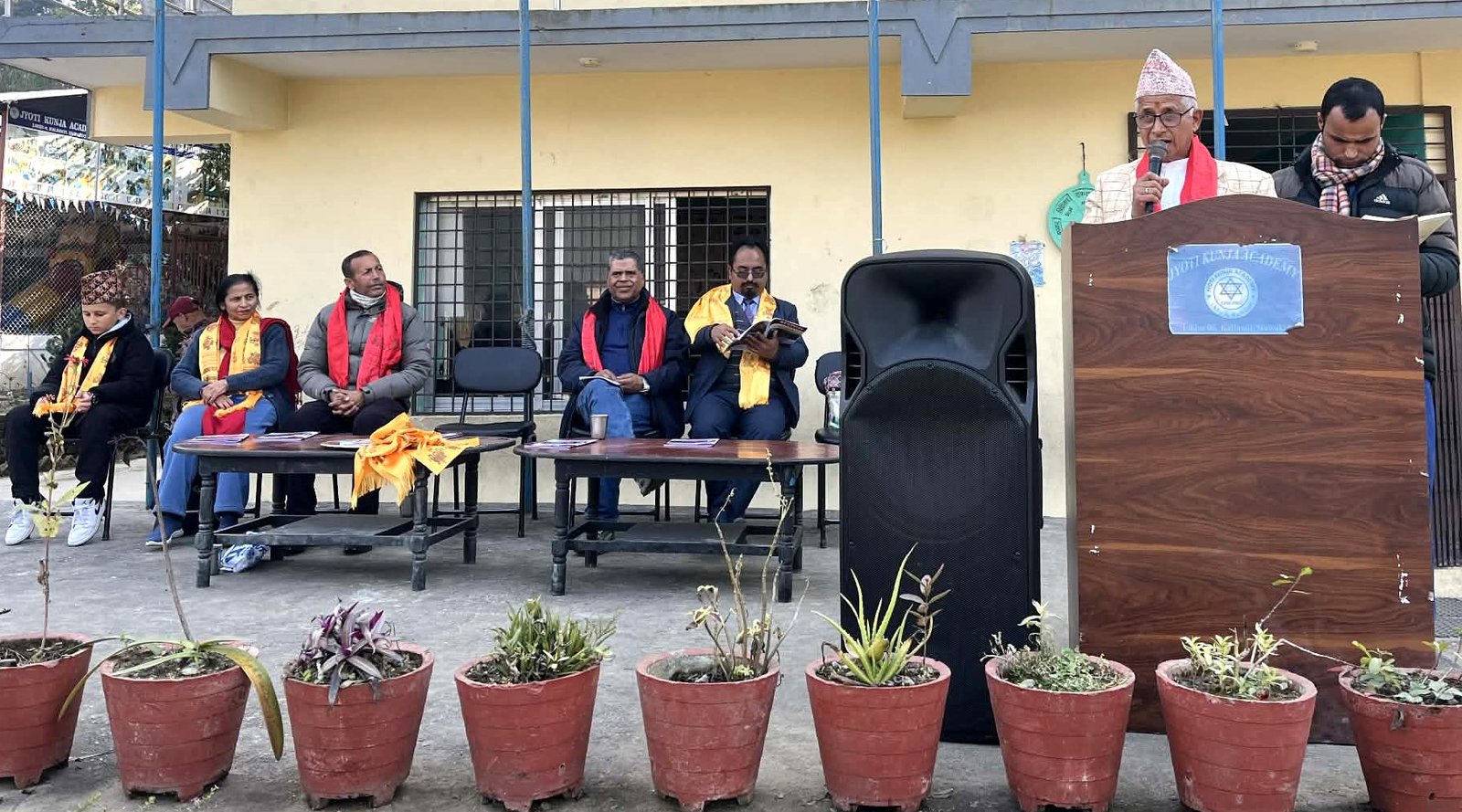 विद्यालय सञ्चालक समितिका अध्यक्ष जगदीश पाठकले साहित्यकारहरू देशका गहना हुन्, समाजका ऐना हुन्, भन्नुहुँदै देशका विकृति, विसङ्गतिमा खवरदारी गर्न र समाजलाई सही दिशा दिन साहित्यकार र उनीहरूको सिर्जनाको ठूलो भूमिका रहने कुरा बताउनुभयो । अध्यक्ष पाठकले समाजका पथ प्रदर्शक र ज्ञानका ज्योति साहित्यकारहरूलाई विद्यालयले सधैं सम्मान गर्नुपर्ने धारणा राख्नुभयो ।