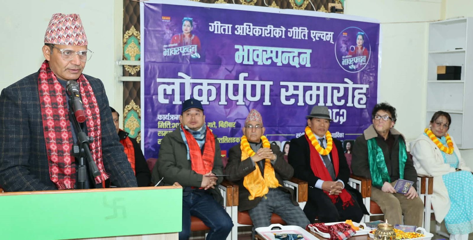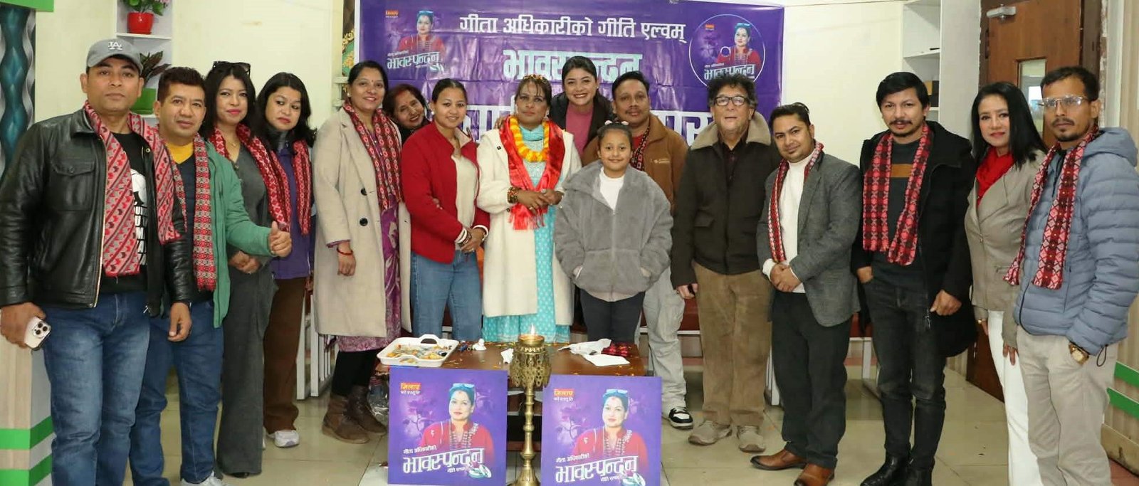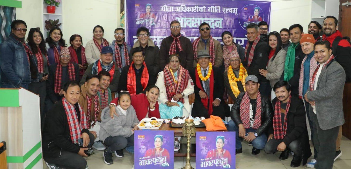 काठमाडौं, माघ ८ गते विहीबार । पत्रकार/गीतकार गीता अधिकारीले आफ्नो जन्मदिनमा गीति एल्बम ‘भावस्पन्दन’ श्रोता/दर्शकमाझ ल्याउनुभएको छ । मिलापको आयोजनामा काठमाडौंमा एक विशेष समारोहबीच महाकाव्यकार खेमनाथ दाहालको सभापतित्वमा उक्त गीति एल्बमको लोकार्पण गरिएको हो । गीतकार/साहित्यकार अमर वान्तुको प्रमुख आतिथ्यतामा गीतकार संघका वसन्त वित्यासी थापा, अन्तर्राष्ट्रिय नेपाली साहित्य समाजका पूर्व अध्यक्ष राधेश्याम लेकाली, वरिष्ठ कलाकार तथा गीतकार उत्तम केसी, वरिष्ठ संगीतकार राजु सिंह, स्रष्टा गीता अधिकारी, संगीतकार दीपक शर्मा, संगीतकार राजेन्द्र बजगाईं र गायक सविन सुवेदीलगायतले उक्त गीति एल्बमको लोकार्पण गर्नुभएको थियो ।