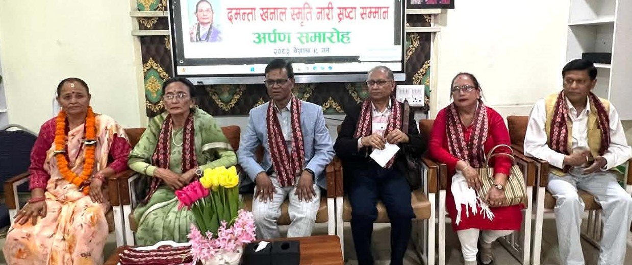 २०८२ वैशाख ९, काठमाडौं । नेपाल स्रष्टा समाजले हरेक वर्ष प्रदान गर्दै आएको ‘दमन्ता खनाल स्मृति नारी स्रष्टा सम्मान’ उदयपुरकी मालावती काफ्लेलाई हिजो अर्पण गरियो । नगद राशि २० हजार १११ रुपैयाँसहित सो सम्मान मालावतीलाई प्रदान गरिएको हो ।